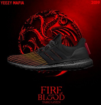 Le sneaker Adidas previste per la vendita saranno un po’ diverse da quelle ipotizzate da Yeezy Mafia. La linea seguita è quella della UltraBOOST e le colorazioni scelte saranno due. La prima, House Targaryen, avrà tonalità e nuance che caratterizzano la dinastia della madre dei draghi, Daenerys, interpretata nella serie dalla bellissima Emilia Clarke. Mentre la seconda scarpa proposta, la House Targaryen Dragons, è completamente ispirata ai tre potenti draghi. Per questo avremo dei colori caldi e fiammeggianti con base nera ed inserti rossi, gialli e arancioni.