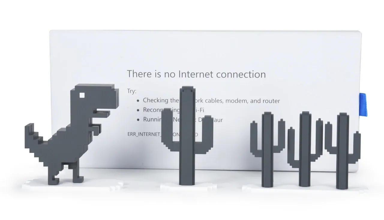 Dead Zebra ha realizzato Chrome Dino Set, un set di statuette collezionabili al cui interno è possibile trovare il T-Rex con gli immancabili cactus da saltare. La confezione stessa è un pezzo da collezione, con la scritta Game Over sul retro e la riproduzione della schermata There is no Internet Connection. Chrome Dino Set sarà disponibile a partire dalle 16:00 dell’11 Marzo 2019 sul sito ufficiale di Dead Zebra. Il prezzo è di 24 dollari.