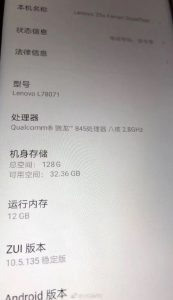 Sono apparse nel web le presunte specifiche tecniche del nuovo smartphone top di gamma Lenovo Z5s Ferrari Edition dalle dimensioni effettive di 156.7 x 74.5 x 7.8 millimetri, molto probabilmente equipaggiato con un processore Qualcomm Snapdragon 845, affiancato da una memoria RAM da 12 GB ed uno storage interno da 128 GB, display da 6,3 pollici di diagonale con risoluzione FullHD+, il tutto alimentato dal sistema operativo Android in versione 9 Pie con interfaccia utente personalizzata ZUI 10.5.135 e da una batteria da 3200 mAh.